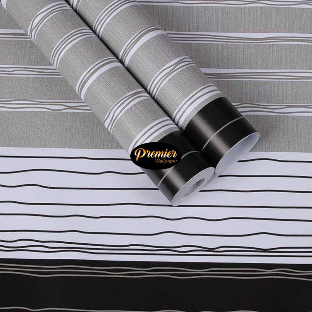 Garis Garis Gradasi Cream Putih Hitam Wallpaper 45CM Sumber : shopee.co.id